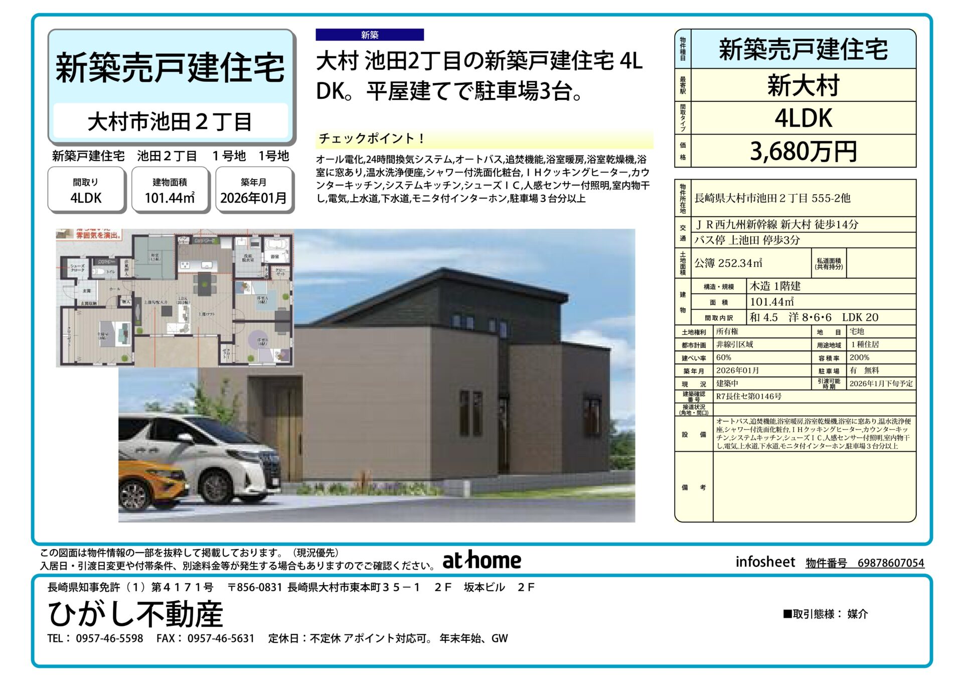 大村 池田2丁目の新築戸建住宅。4LDK。駐車場3台。