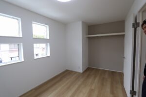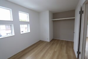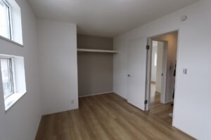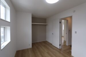 2階の洋室7条のお部屋です。ドアがついてないクロークです。部屋が広く感じますね。