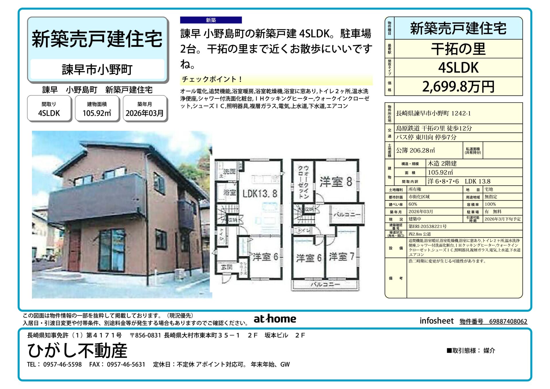| 建物名 | 諌早 小野島町 新築戸建住宅(一般向非公開) | ||||