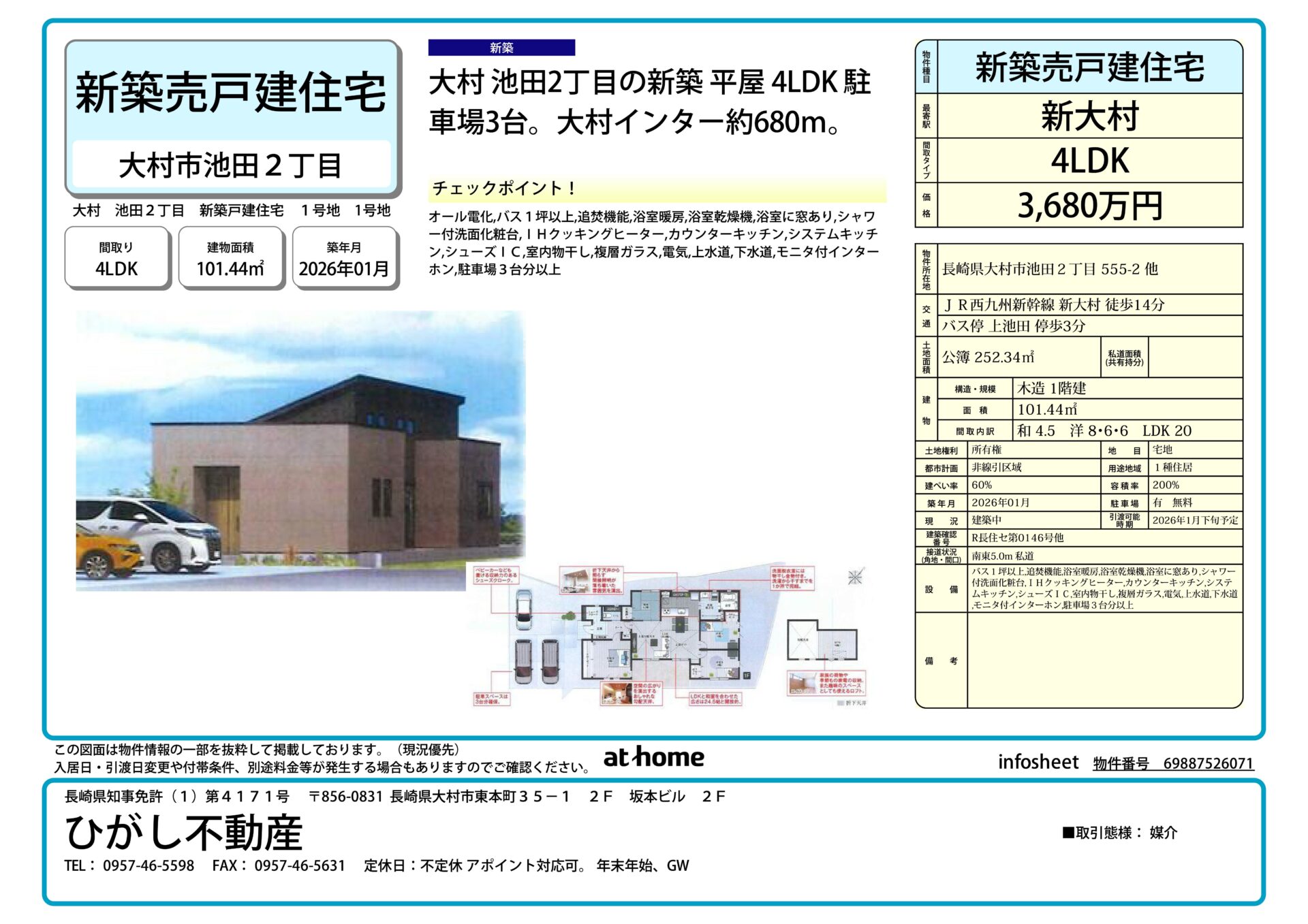 JR西九州新幹線 新大村 徒歩14分 バス停 上池田 停歩3分 |