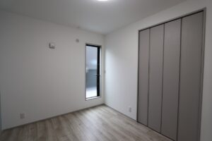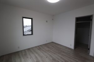 2階の主寝室。8帖でWIC付です。この部屋からはベランダいけません。窓にもしっかり網戸もついてます。WICも十分3帖です。