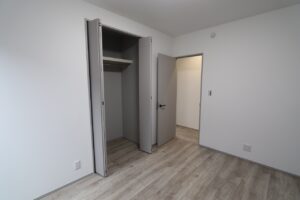 2回居室の6条のお部屋です。個々のお部屋と前のお部屋からはべランダへ行けます。このお部屋も収納付き。