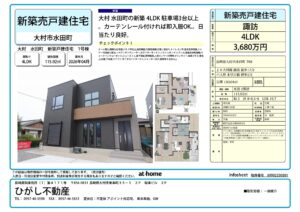 大村 水田町の新築戸建住宅 4LDK+WIC 駐車場3~4台。