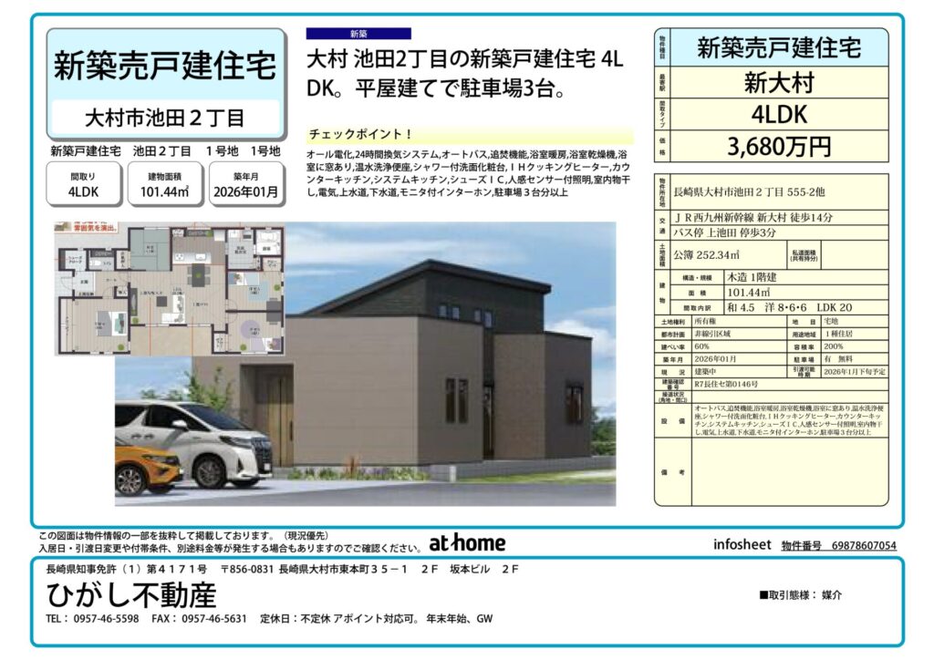 【売買】新築戸建住宅 大村 池田 2丁目 4LDK 1号地 10024201