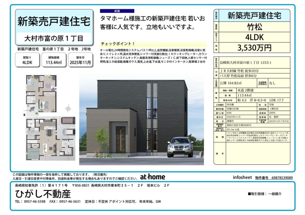 【売買】新築戸建住宅 大村 富の原1丁目 4LDK 2号地 10016101
